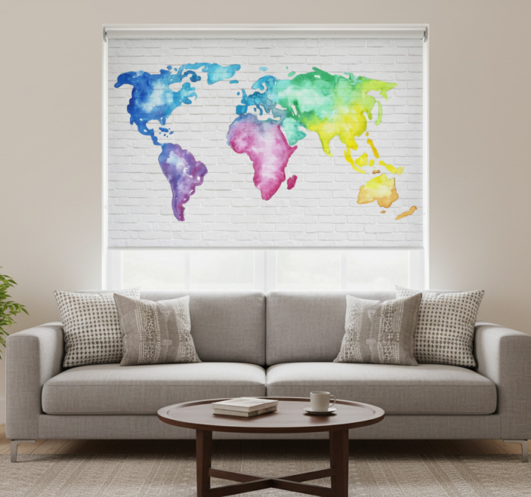 Estor enrollable blanco mapa mundial colorido