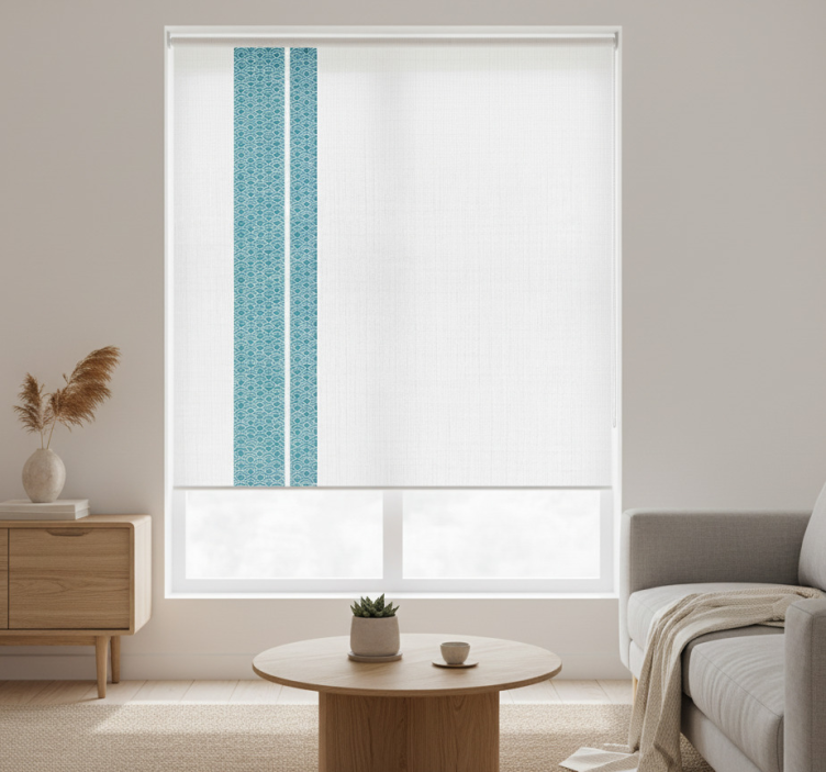 Estor enrollable blanco rayas azules minimalistas