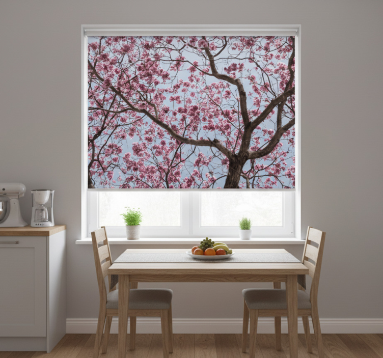Estor enrollable cocina árbol de flores de cerezo rosa