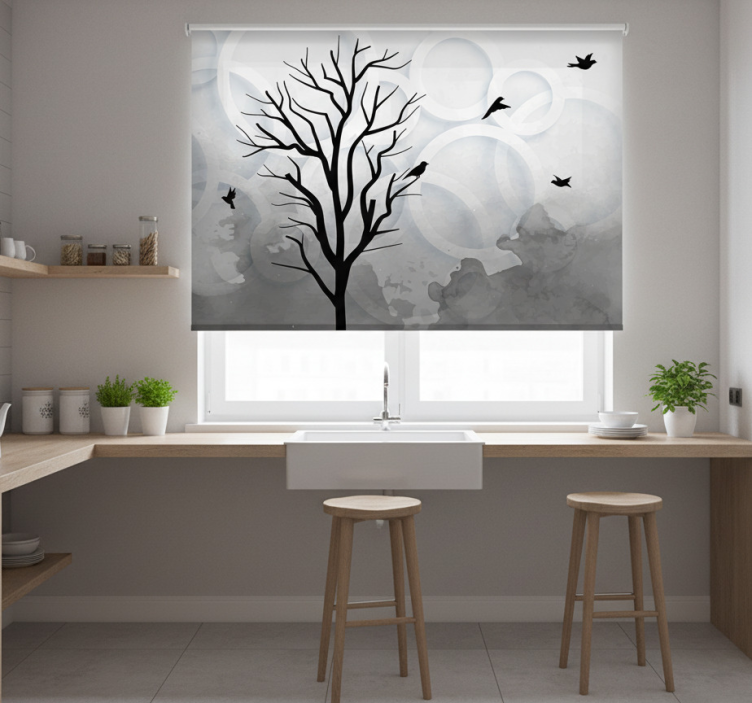 Estor enrollable cocina árbol negro con pájaros