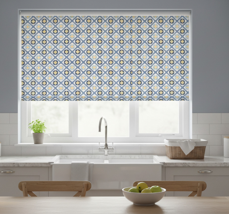 Estor enrollable cocina azulejo portugués azul y amarillo