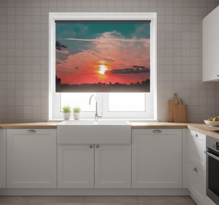 Estor enrollable cocina diseño elegante cielo nublado