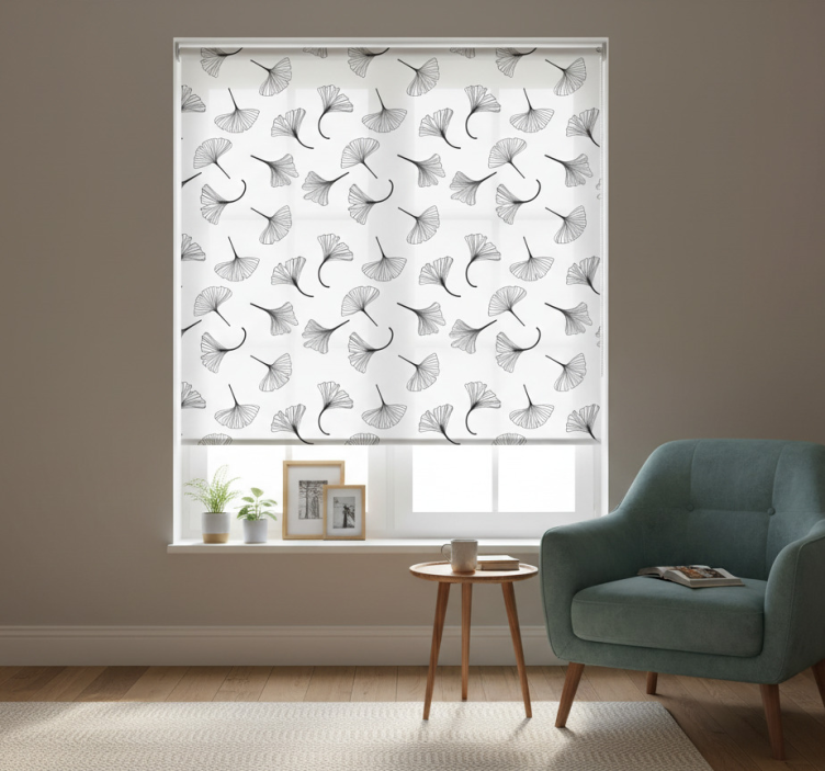 Estor enrollable cocina diseño hojas de ginkgo negro