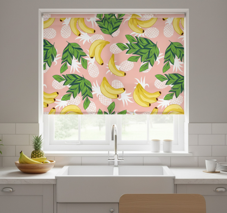 Referencia: E6281Descubre el encanto tropical con nuestro Estor enrollable cocina follaje de frutas tropicales, que presenta un vibrante diseño lleno de colores vivos y exuberantes formas de frutas tropicales. Este estor no solo embellece tu cocina, sino que también aporta un toque de frescura y alegría a tu espacio, convirtiéndolo en un lugar ideal para disfrutar de momentos inolvidables.