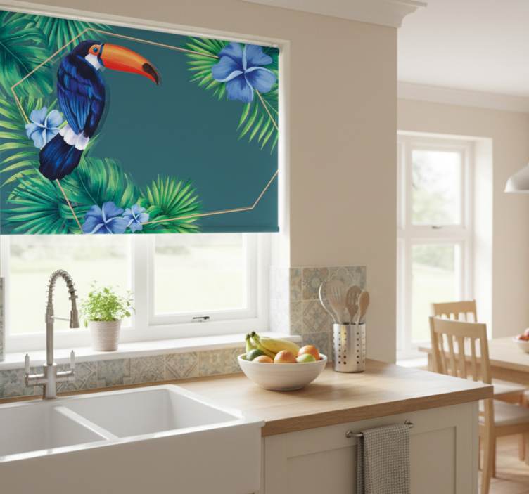 Estor enrollable cocina hoja tropical con tucán