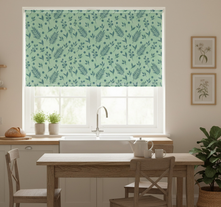 Estor enrollable cocina hojas verdes sobre verde
