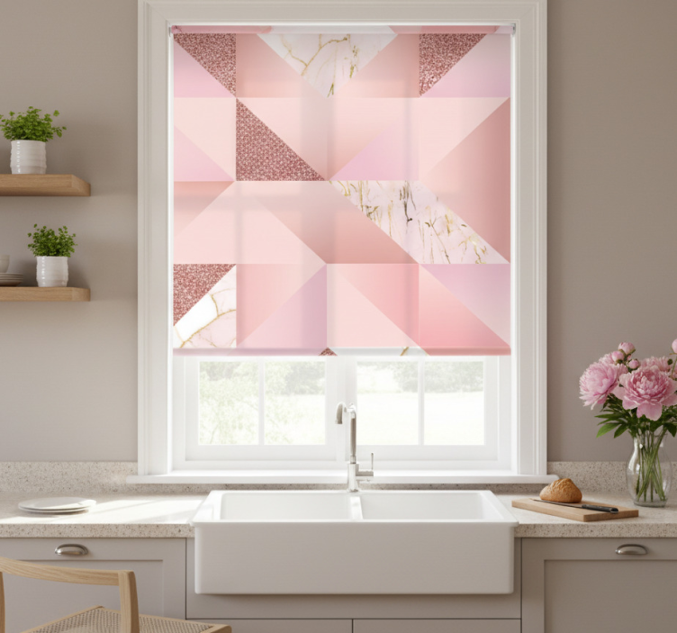 Estor enrollable cocina mármol rosa dorado