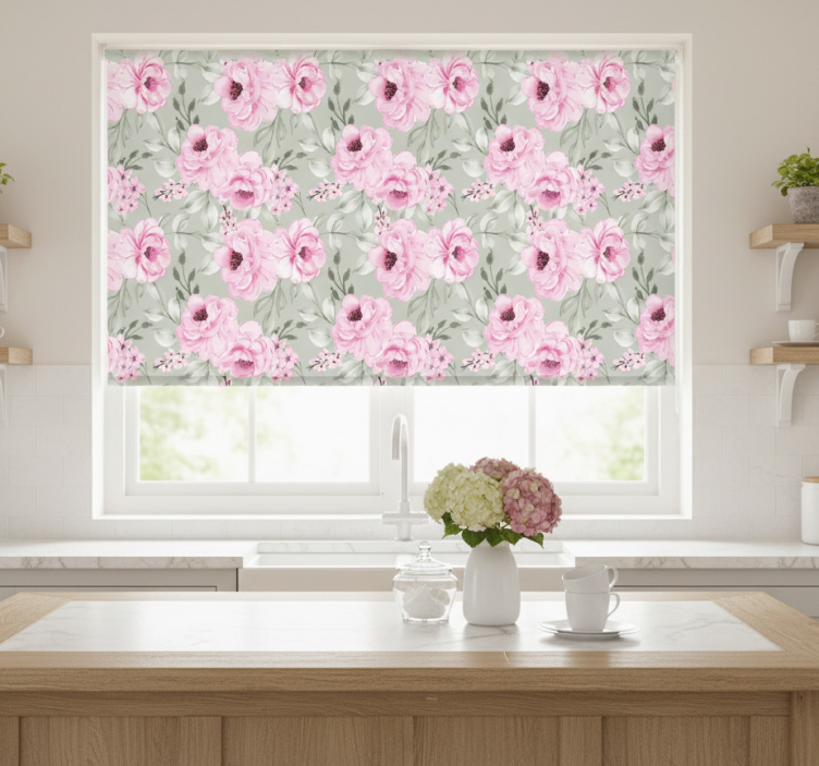 Estor enrollable cocina pastel color peonías