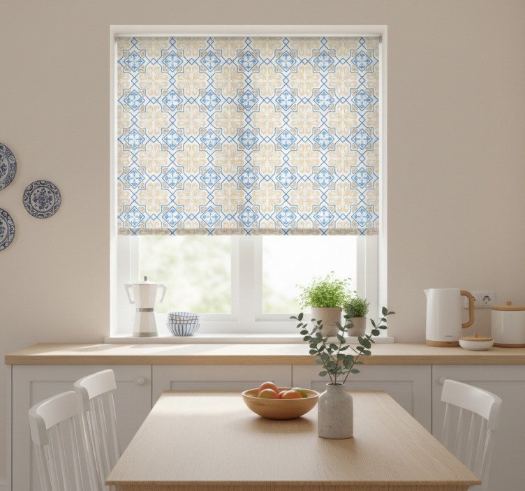 Estor enrollable cocina patrón de azulejos azules