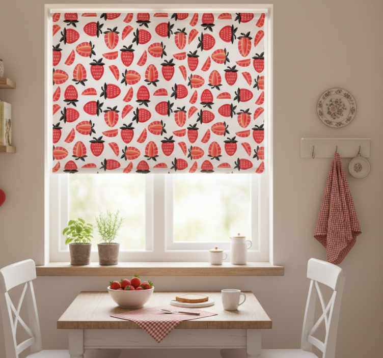 Referencia: E6422Descubre la frescura y el encanto de la naturaleza con nuestro Estor enrollable cocina patrón de fresas rojas realistas. Este diseño vibrante y alegre presenta fresas rojas en un fondo que evoca la calidez de un día soleado, transformando tu cocina en un espacio acogedor y lleno de vida. Las fresas, con sus detalles meticulosamente elaborados, brindan un toque de frescura y originalidad que cautivará a todos tus visitantes.
