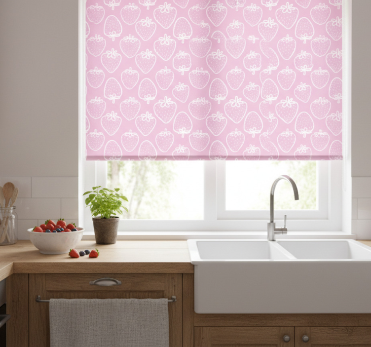 Estor enrollable cocina patrón de fresas rosas