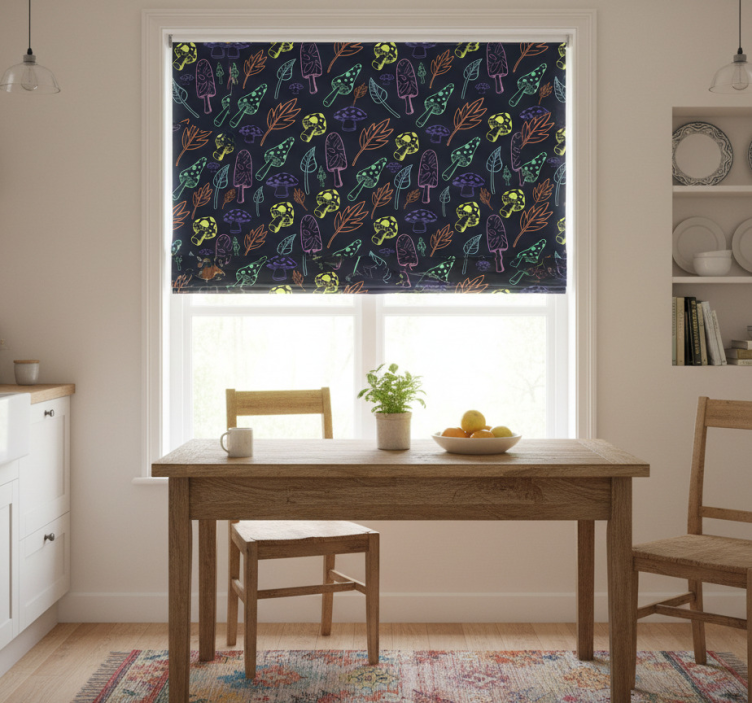 Estor enrollable cocina patrón de setas coloridas