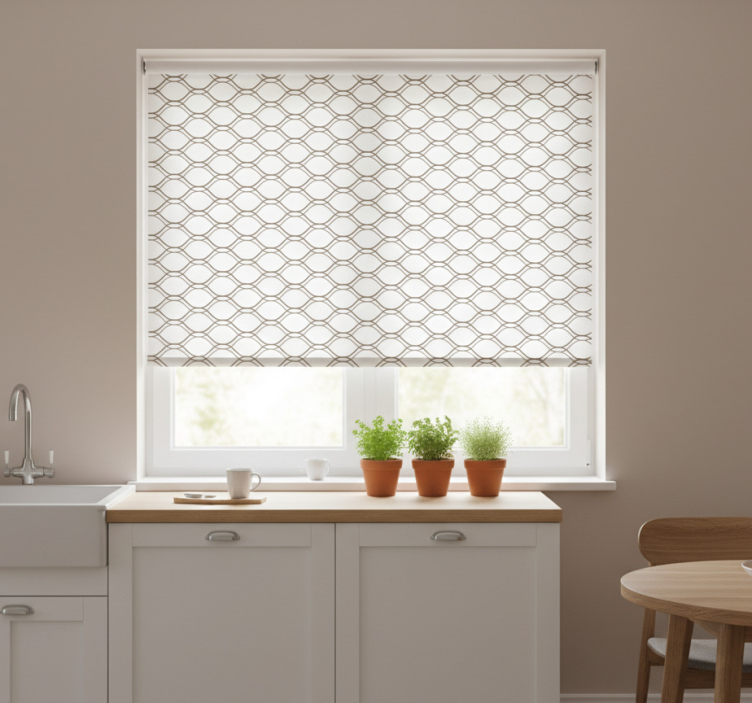 Estor enrollable cocina patrón geométrico ondulado marrón
