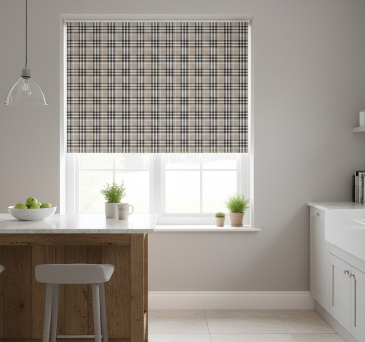 Estor enrollable cocina patrón tartán escocés gris