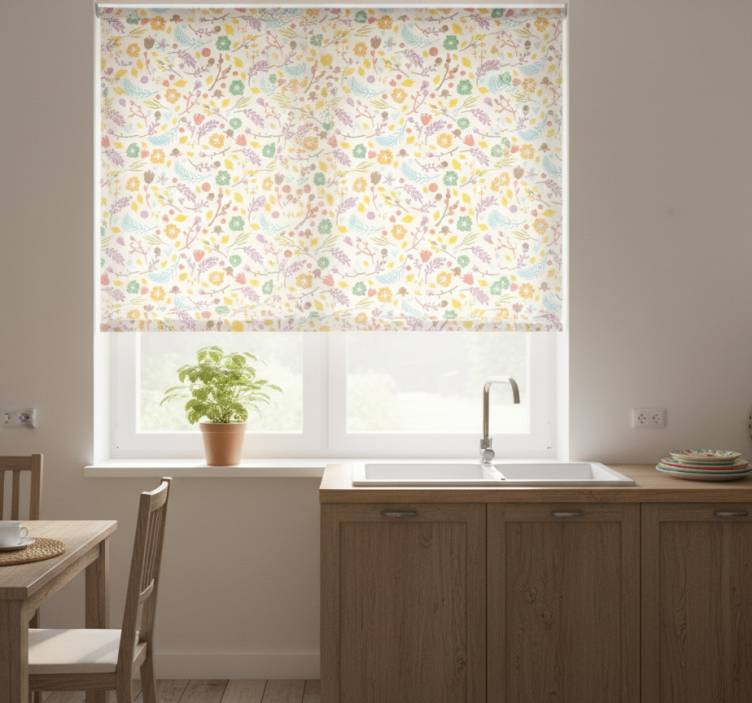 Estor enrollable cocina patrón típico de flores polacas