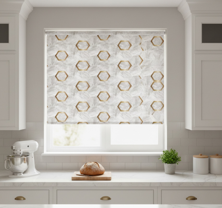 Estor enrollable cocina patrones hexagonales dorados