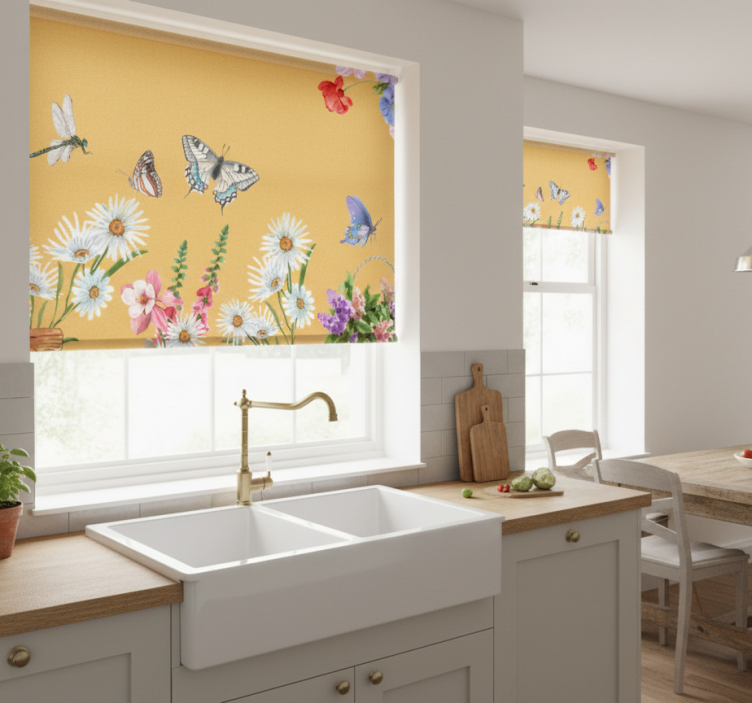 Estor enrollable cocina pintura de margaritas y mariposas