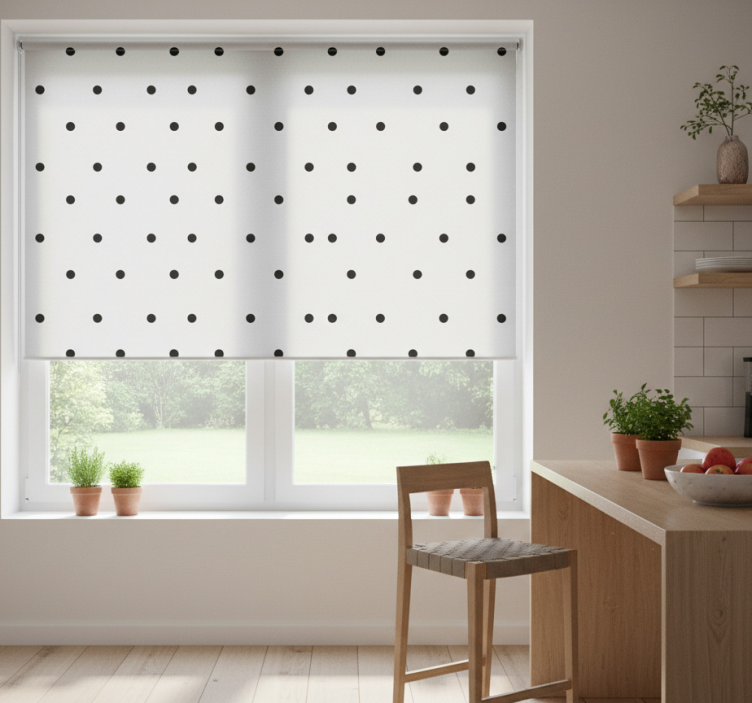 Referencia: E6499Descubre el encanto del Estor enrollable cocina puntos negros estilo nórdico, un producto que combina modernidad y elegancia con un diseño gráfico excepcional. Su fondo claro y los puntos negros crean un contraste atractivo, ideal para añadir un toque distintivo a la decoración de tu cocina. Este estor es perfecto para quienes buscan un estilo nórdico, sencillo y acogedor, a la vez que funcional.