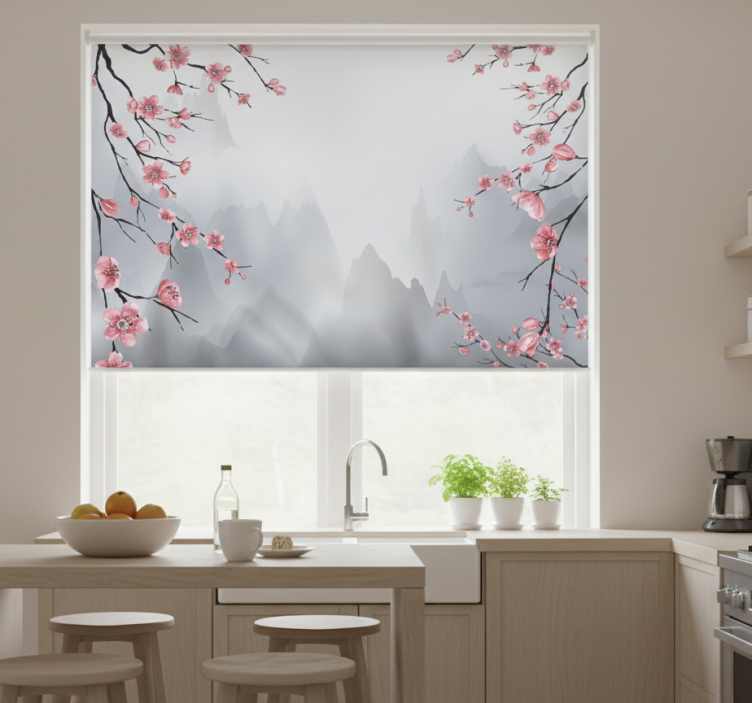 Estor enrollable cocina ramas de cerezo japonés