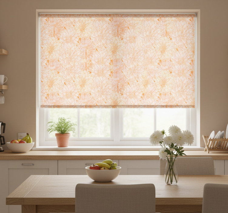 Estor enrollable cocina textura de muchas dalias blancas