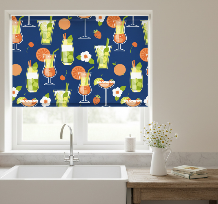 Estor enrollable cocina vintage con cócteles