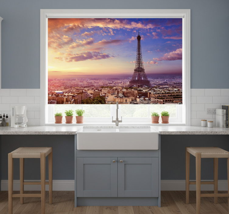 Referencia: E8328Transforma tu cocina en un auténtico rincón parisino con nuestro Estor enrollable cocina vista de parís. Este diseño elegante y moderno presenta una hermosa ilustración de la emblemática ciudad, que combina detalles visuales cautivadores con una paleta de colores que ilumina cualquier espacio. Con su fácil montaje en 2 clics, es la opción ideal para quienes buscan una solución práctica y estilizada. Además, su capacidad para regular la luz y ofrecer privacidad cuando se baja, lo convierte en un elemento esencial para tu hogar.