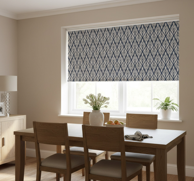 Estor enrollable comedor adorno gris azul glamour