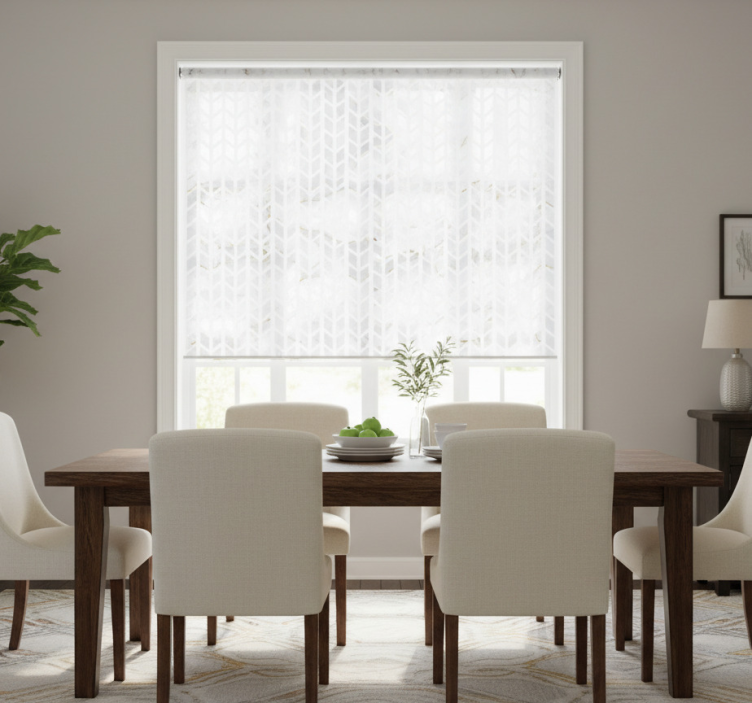 Estor enrollable comedor azulejos de mármol dorado