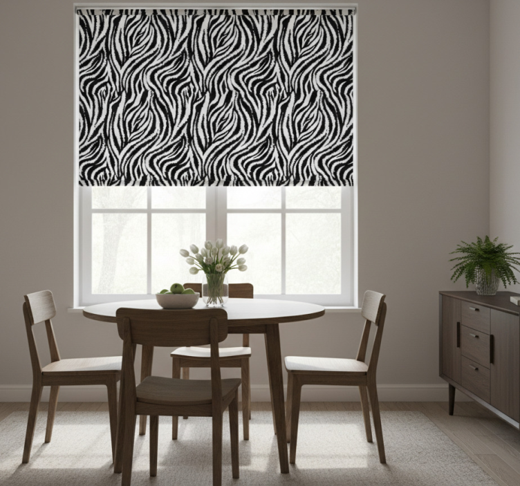 Referencia: E6752Transforma tu espacio con el estor enrollable comedor cebra blanca y negra irregular, un diseño que combina elegancia y modernidad. Con su patrón de rayas irregulares en blanco y negro, este estor no solo es una solución práctica para regular la luz, sino también una verdadera obra de arte que realza la belleza de cualquier comedor. Su estilo contemporáneo se adapta perfectamente a cualquier decoración, aportando un toque de sofisticación y frescura.