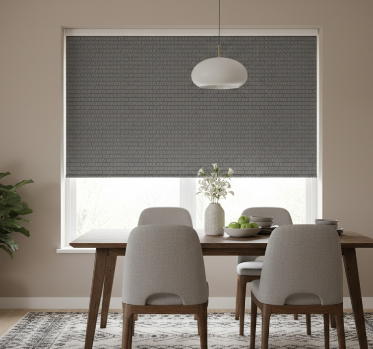 Estor enrollable comedor cubos grises 3d
