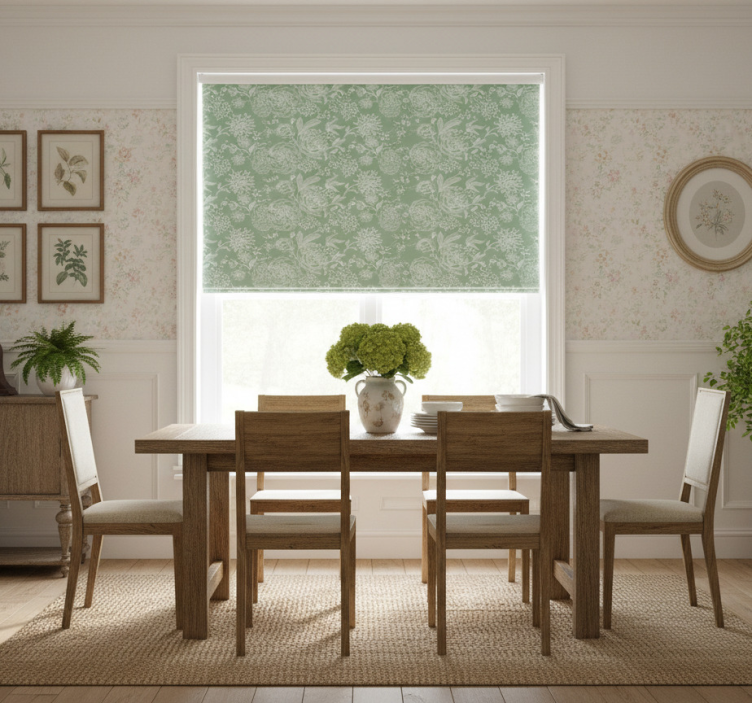 Estor enrollable comedor estilo grandmillennial verde floral