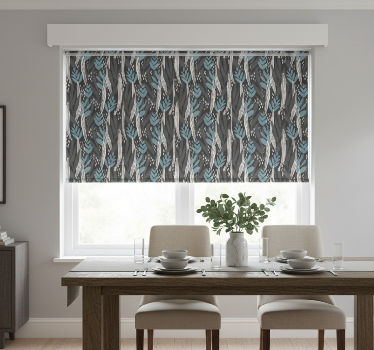 Estor enrollable comedor floral gris acuarela
