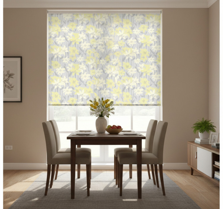 El Estor enrollable comedor estor enrollable comedor flores amarillas fondo gris es la elección perfecta para quienes desean darle un toque fresco y vibrante a su decoración. Su diseño floral inspira alegría y optimismo, transformando cualquier ambiente en un refugio acogedor. Además, su capacidad para regular la luz y proporcionar privacidad lo convierte en una solución práctica y estética. ¡Haz de tu comedor un lugar especial donde disfrutar momentos inolvidables!