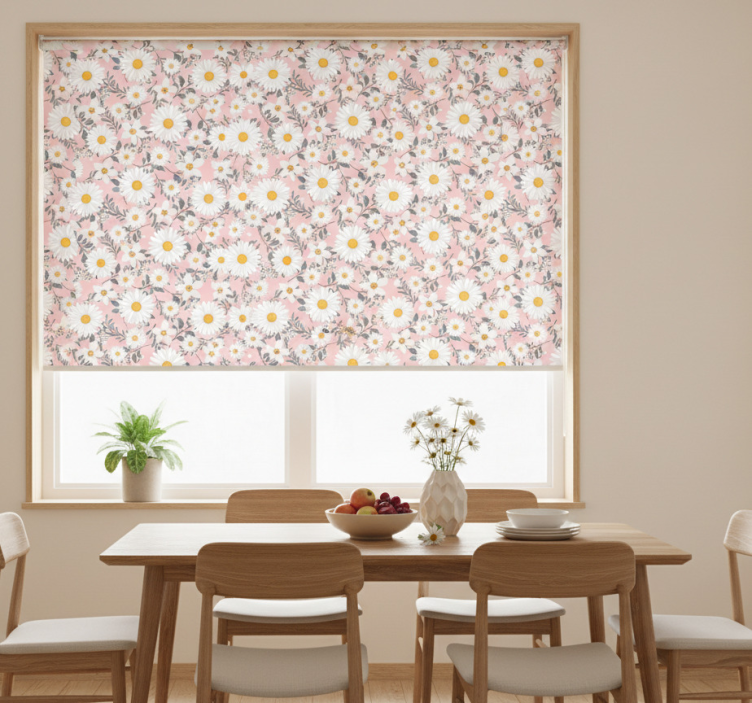 Estor enrollable comedor flores margaritas fondo rosa