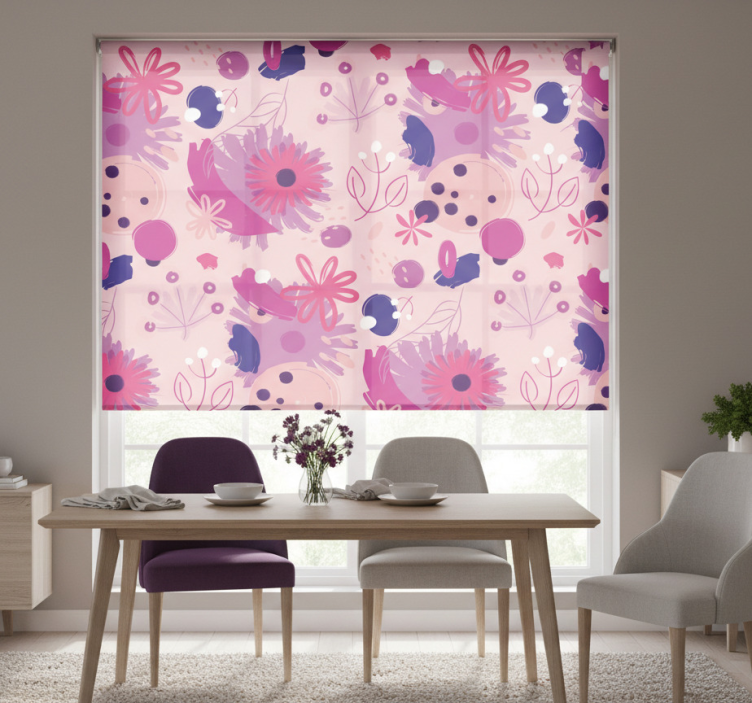 Referencia: E6668Transforma tu comedor con el estor enrollable comedor flores moradas abstractas, un diseño vibrante que combina elegancia y modernidad. Sus hermosas flores moradas en un estilo abstracto aportan un toque artístico, mientras que su funcionalidad se adapta a cualquier espacio. Este estor no solo embellece, sino que también es práctico, permitiéndote disfrutar de la luz natural sin sacrificar tu privacidad.