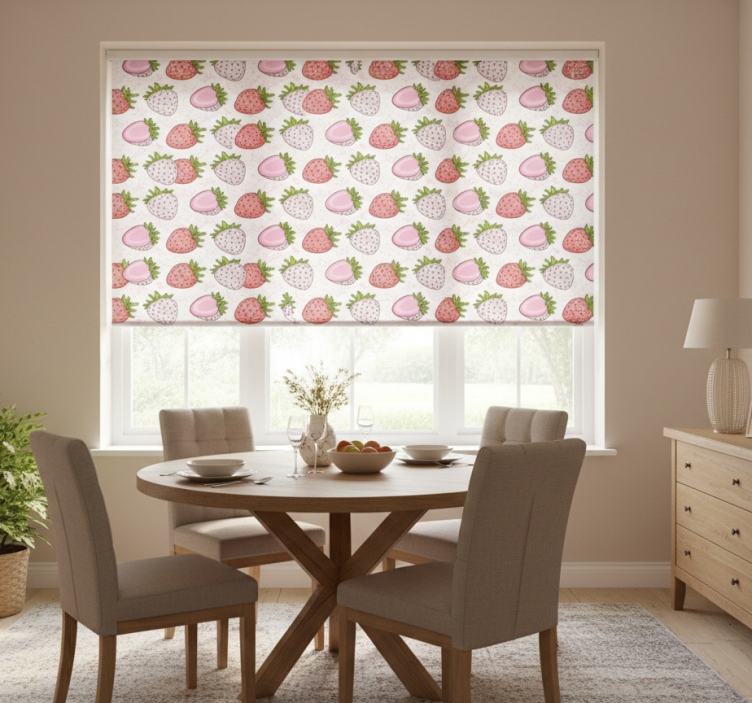 Estor enrollable comedor fresas rosas y rojas