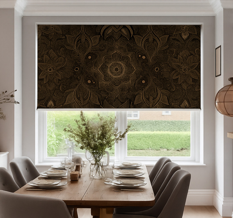 Estor enrollable comedor mandala negra y dorada