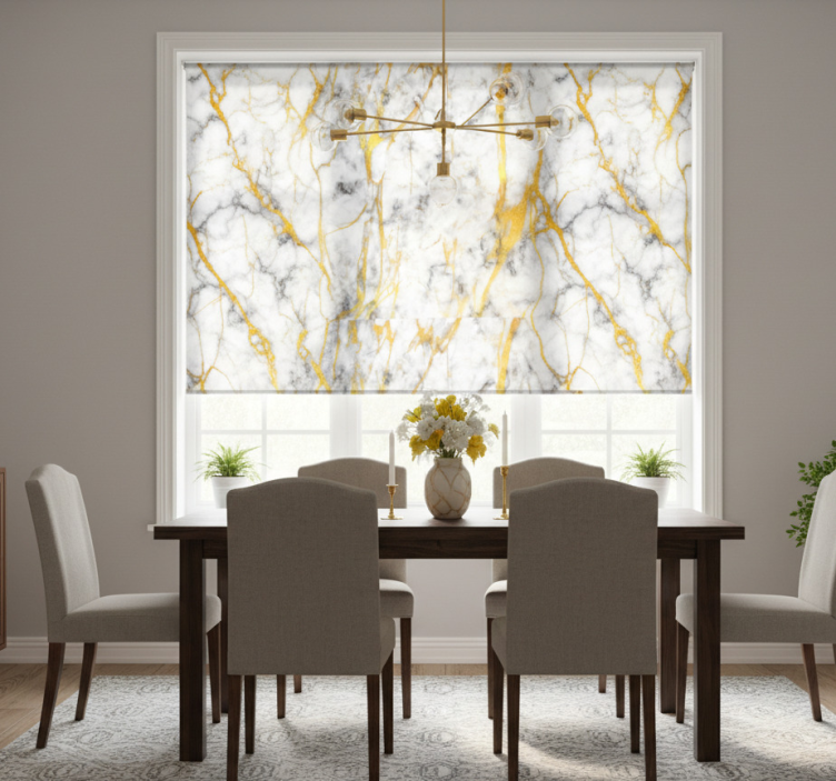 Estor enrollable comedor mármol gris y dorado elegante