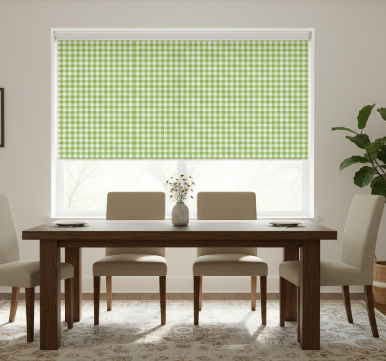 Estor enrollable comedor patrón de cuadros vichy