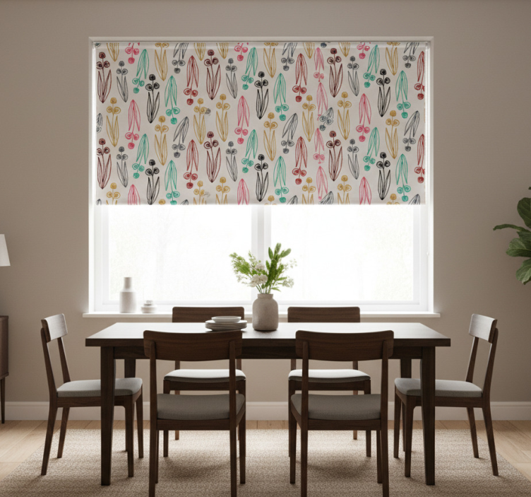 Estor enrollable comedor patrón de flores abstractas coloridas