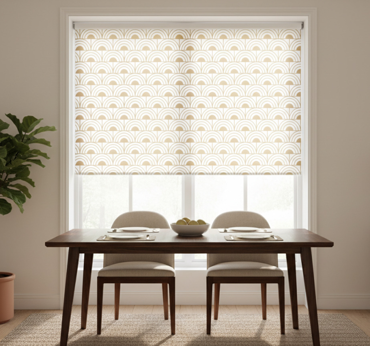 Referencia: E6568Descubre el elegante Estor enrollable comedor patrón decorativo arco dorado, un producto que combina a la perfección diseño y funcionalidad. Este estor presenta un hermoso patrón de arcos dorados que iluminará cualquier espacio, aportando un toque de sofisticación y modernidad. Su diseño no solo es visualmente atractivo, sino que también está pensado para adaptarse a tus necesidades diarias, haciendo de tu comedor un lugar aún más acogedor.