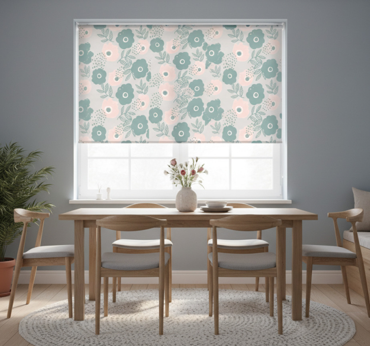 Estor enrollable comedor flores acuareladas rosas y azules