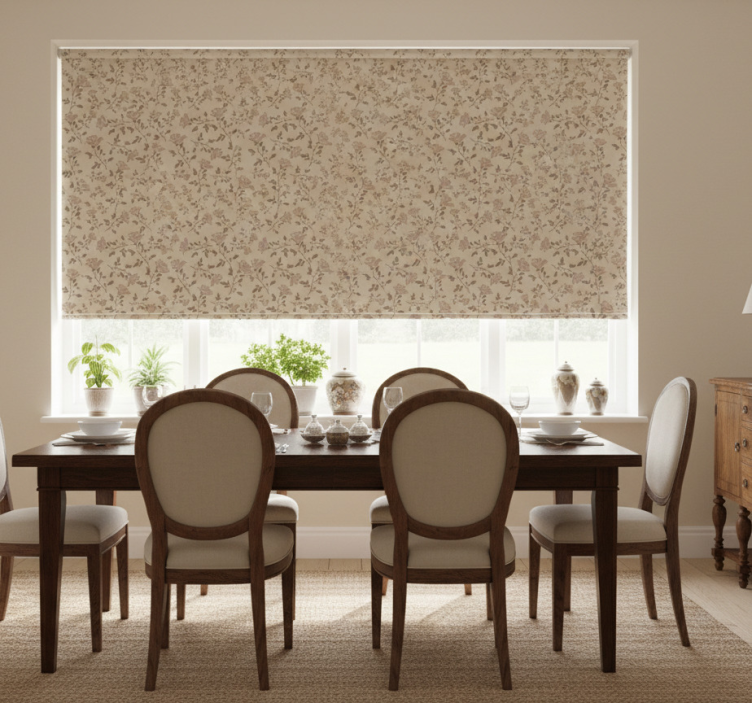 Estor enrollable comedor patrón rosa vintage marrón
