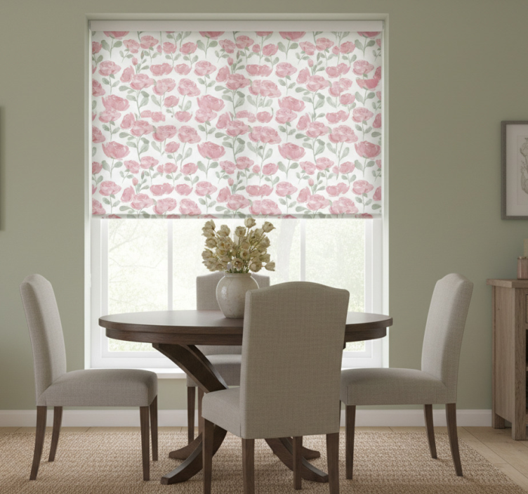 Estor enrollable comedor patrón rosa vintage natural