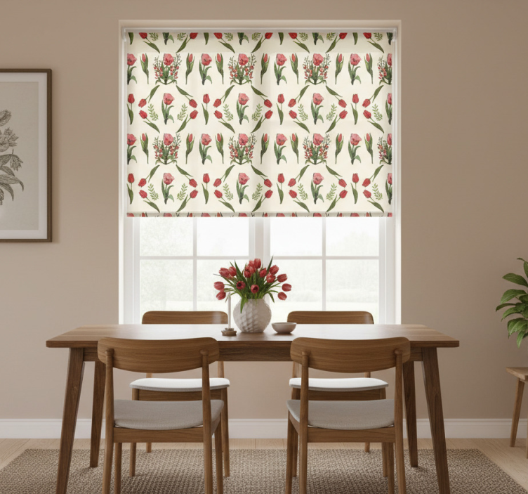 Estor enrollable comedor primavera con tulipanes rojos