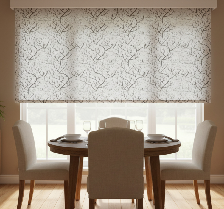Estor enrollable comedor ramas grises delgadas con pájaros