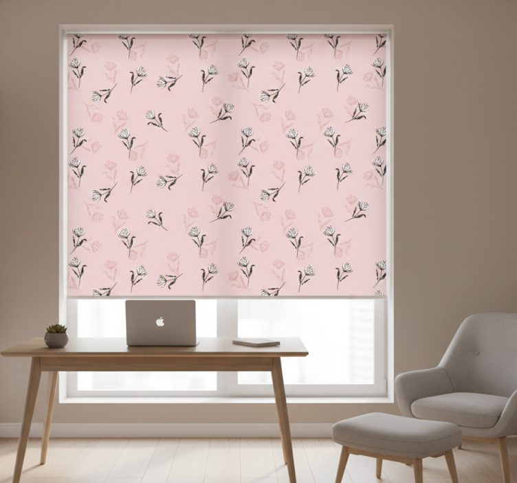 Estor enrollable despacho lirios blancos sobre fondo rosa