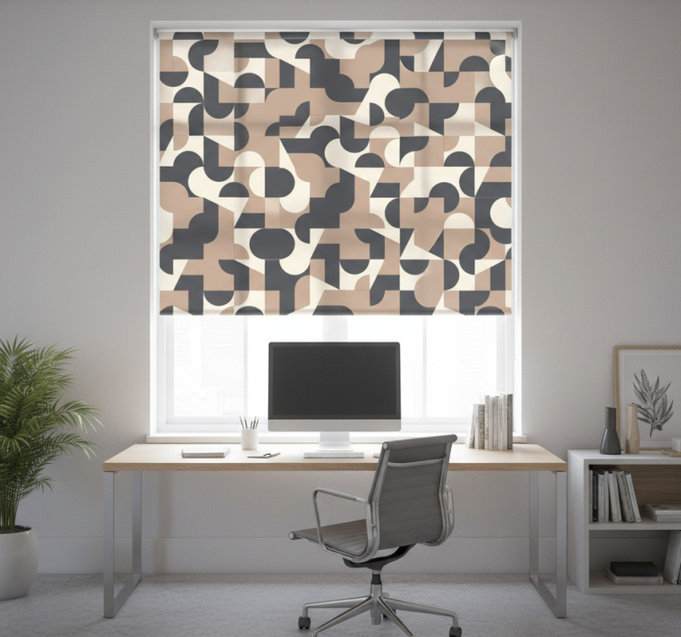 Estor enrollable despacho patrón de colores contrastantes