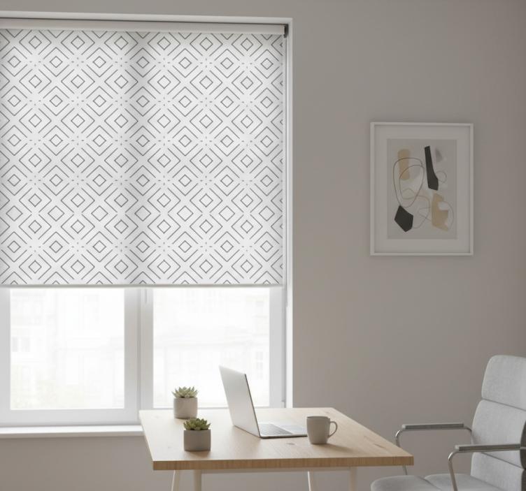 Estor enrollable despacho patrón geométrico blanco líneas finas
