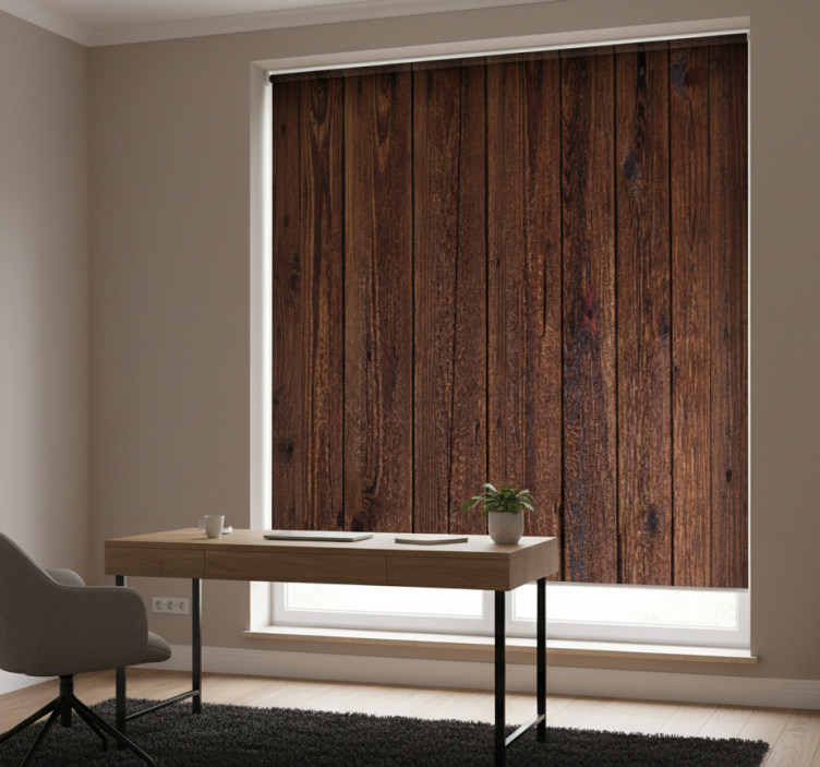 Estor enrollable despacho tablas de madera rústicas marrón oscuro